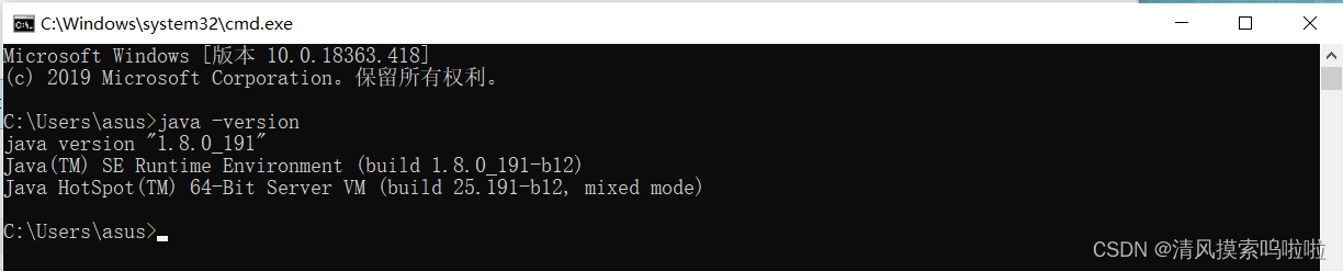 6.在命令提示符下输入“ java –version ”并回车查看安装的JDK版本。