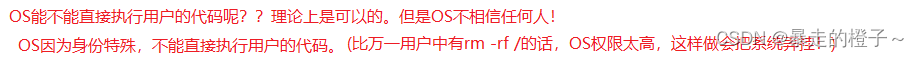 内核态的权限过大,如果直接去执行用户的代码,可能会存在风险。