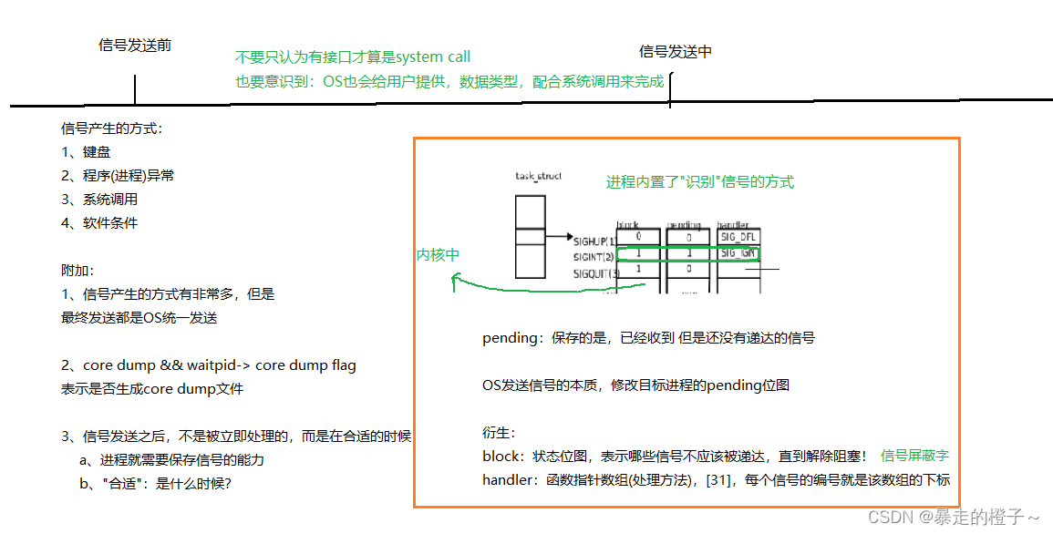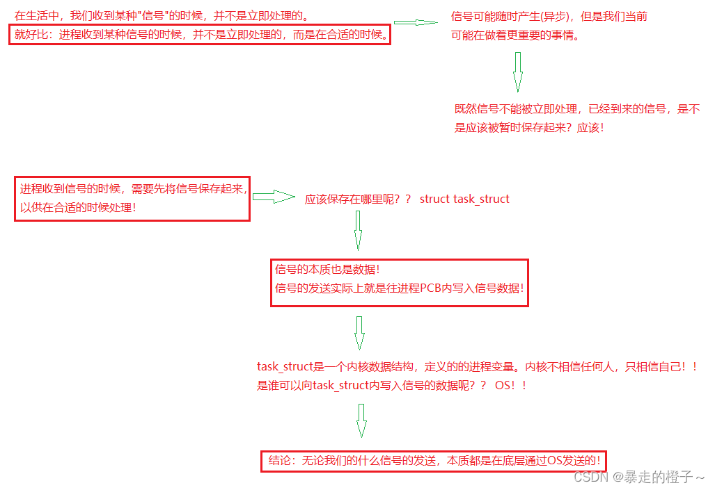 前几天一直在搞算法,没来得及更新博客。今天就来谈谈进程信号。主要分信号发送前、信号发送中、信号发送后三个阶段来讲。这个知识还蛮重要的~