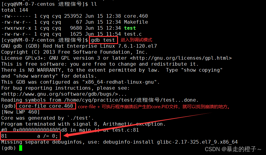 [cyq@VM-0-7-centos 进程信号]$ gdb test
