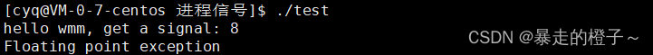 我们使用整数除以0的浮点数错误的代码,这时候我们看看进程会收到什么信号: