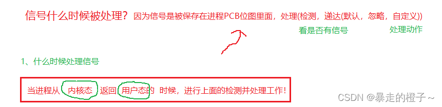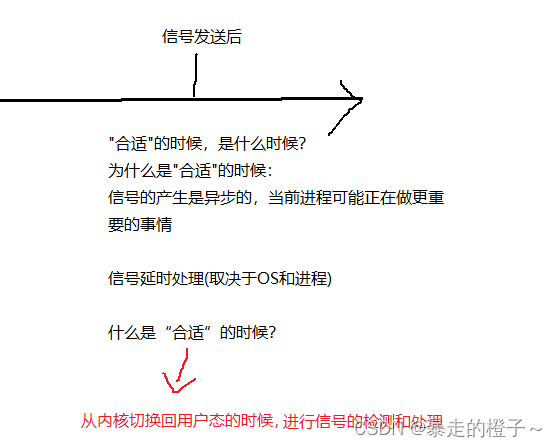 "合适"的时候,就是指当进程从内核态转换为用户态的时候,在这之前要进行信号检测!