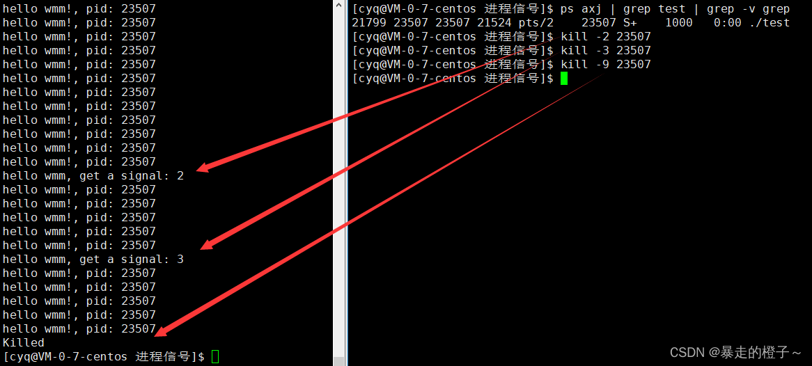 printf("get a signal: %d, pid: %d\n", signo, getpid());