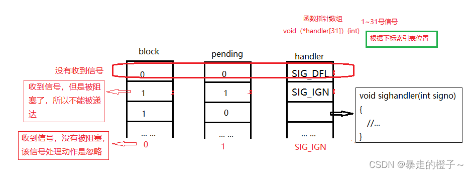 至于handler表的函数接口已经介绍过了,就是signal,可以捕捉信号,并指定处理动作。