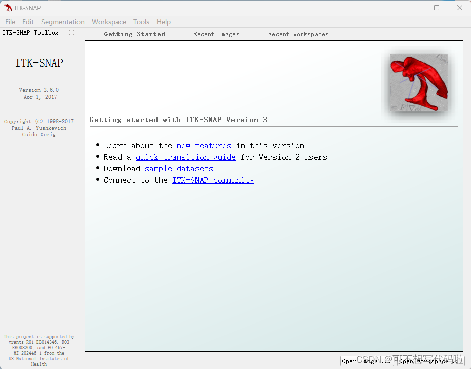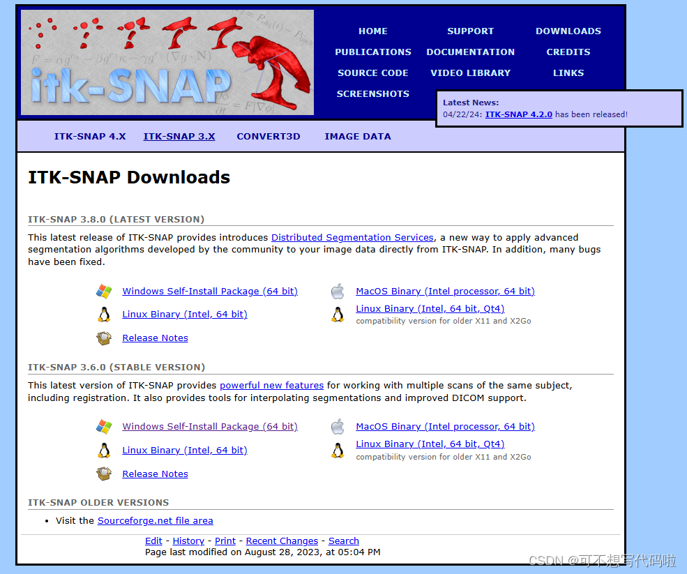 下载地址:ITK-SNAP Version 3.x Downloads (itksnap.org)