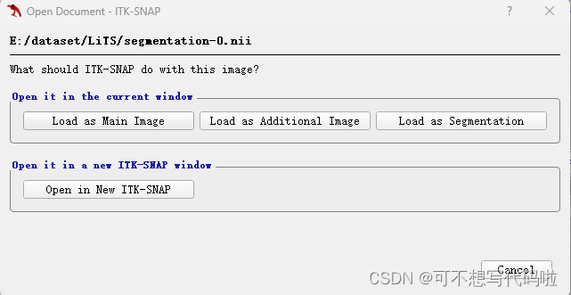 还可以将分割结果直接拖入软件,选择Load as Segmentation,就可以同时显示原始数据和分割结果。(这里用的是训练集,但是报错了,说是图像分辨率问题...咱也不懂)