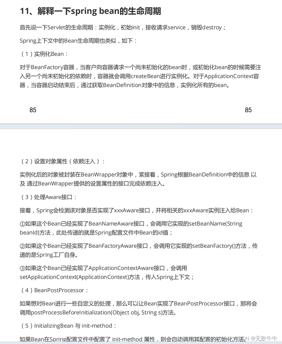 简单的来说,一个Bean的生命周期分为四个阶段: