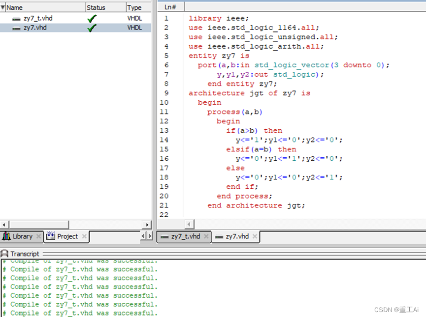 本文介绍了一个使用VHDL实现的4位数值比较器的设计与测试过程。该比较器能够判断两个输入数值之间的大小关系,并通过三个输出信号分别指示a大于b、a等于b及a小于b的状态。此外,还提供了一段测试代码用于验证比较器的功能。