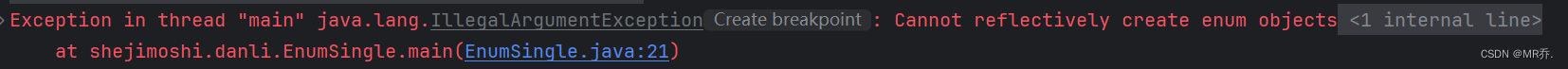 EnumSingle instance1 = declaredConstructor.newInstance();//报错