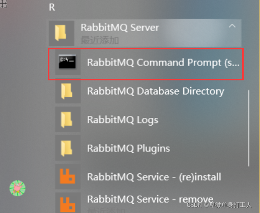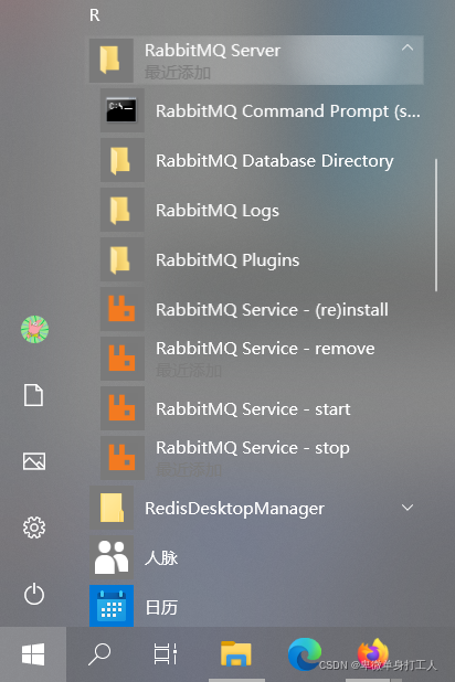 当我们安装完后,点击左下角的“开始”,然后我们就能找到RabbitMQ给我们创建好的快捷方式。