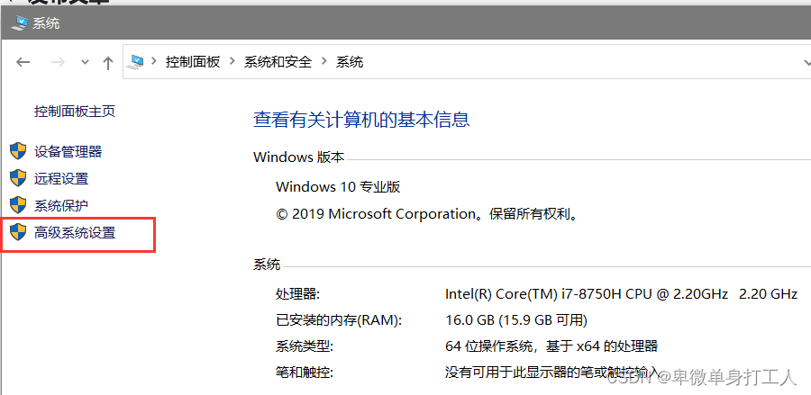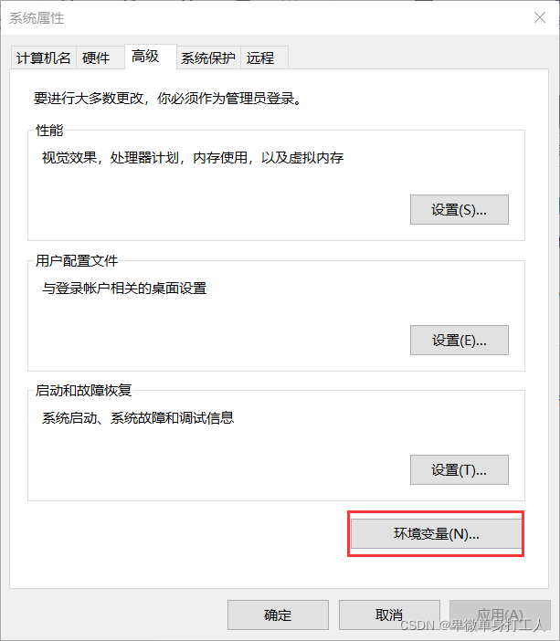 我们需要去找到我们的系统属性面板中的环境变量进行环境配置