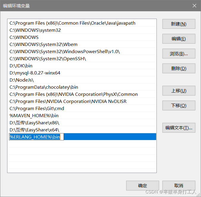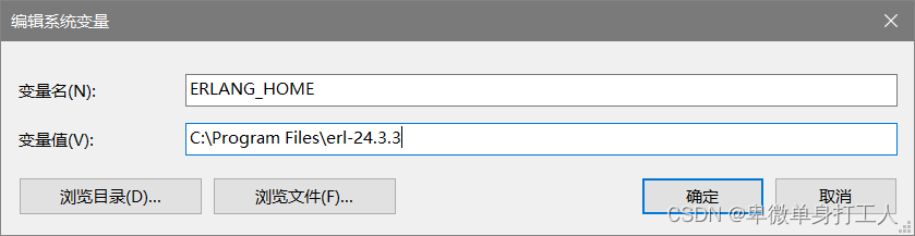然后我们把刚才Erlang所安装的目录和名字填写如下,点击确定: