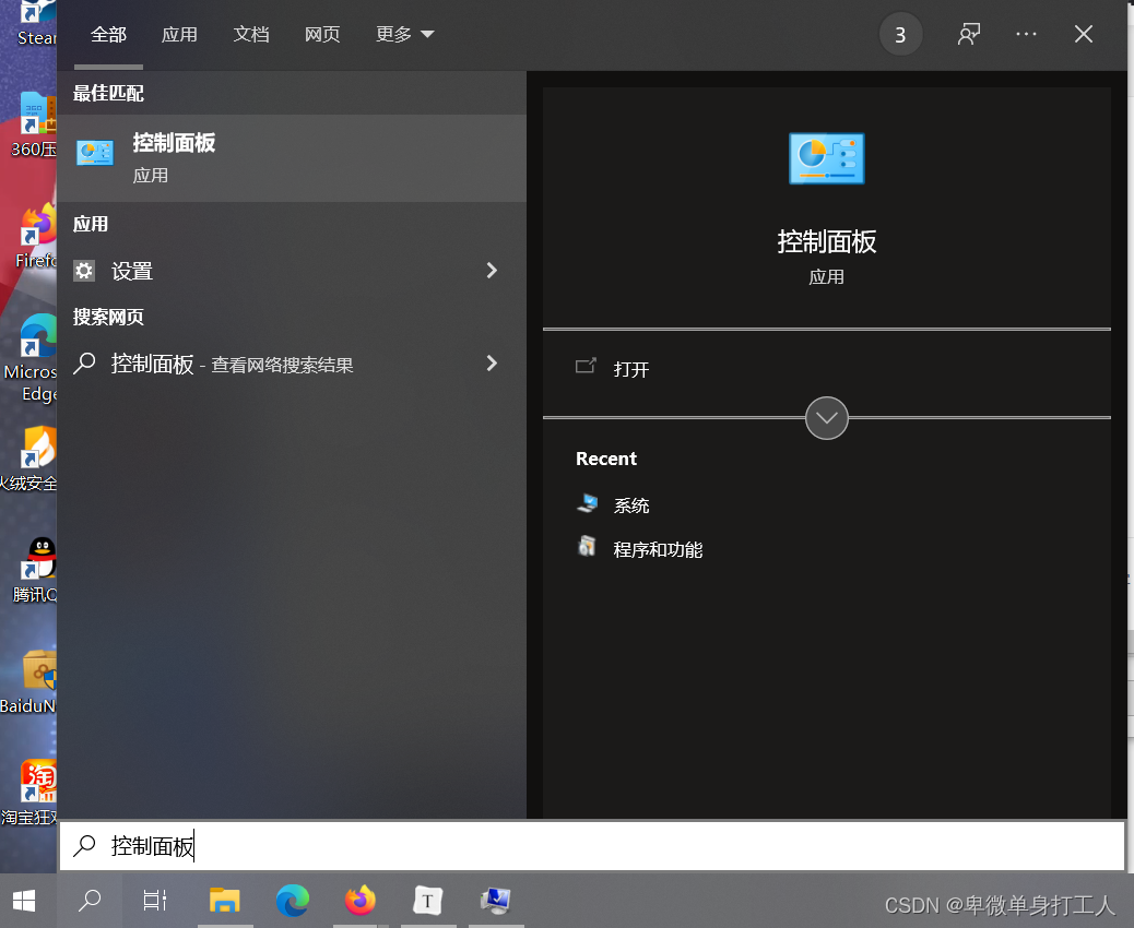 因为我是Win10系统,所以我选择直接搜索控制面板