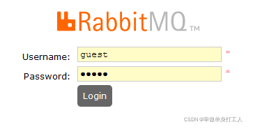 然后我们就能来到RabbitMQ的信息图形化管理页面的登录界面: