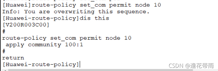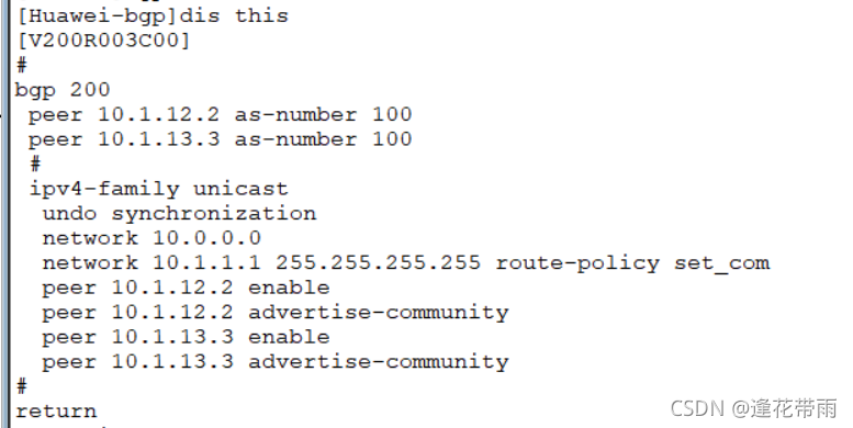 通过 network 10.1.1.1 255.255.255.255 route-policy set_com 让路由携带community标记