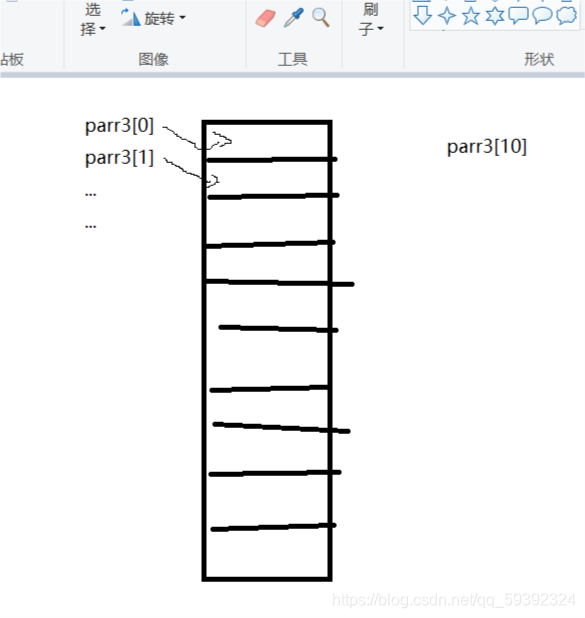 int (*parr3[10])[5]中(*parr3[10])可视为(*p),是一个指针数组,