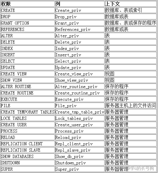 - *.* : 代表本系统中的所有数据库的所有对象(表,视图,存储过程等)