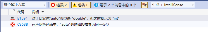 //auto e; 无法通过编译,使用auto定义变量时必须对其进行初始化