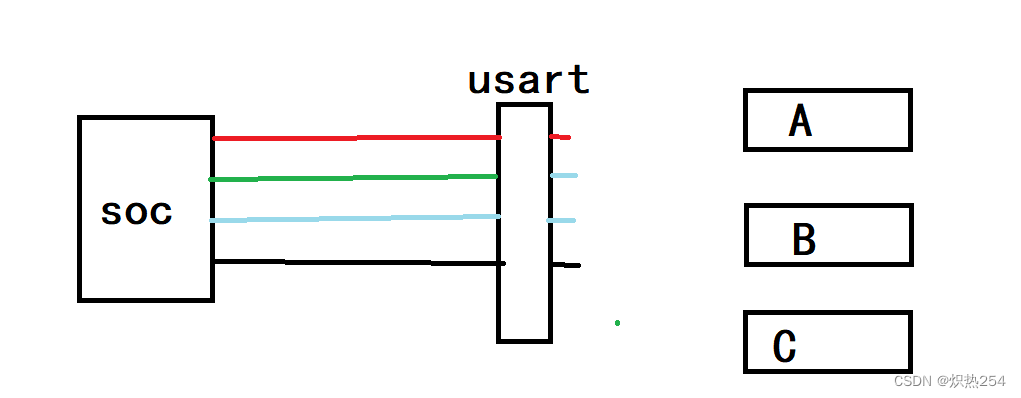 由于是在公司项目中,因为某些原因延伸出来了三颗定位芯片,芯片A (bps :9600 )、芯片B((bps :9600)、芯片C((bps :115200),需要让CPU去主动识别这几个芯片来自动适应让其正常工作。SOC和定位芯片的物理连线是串口(UART),就四颗线:RX、TX、Vcc、GND