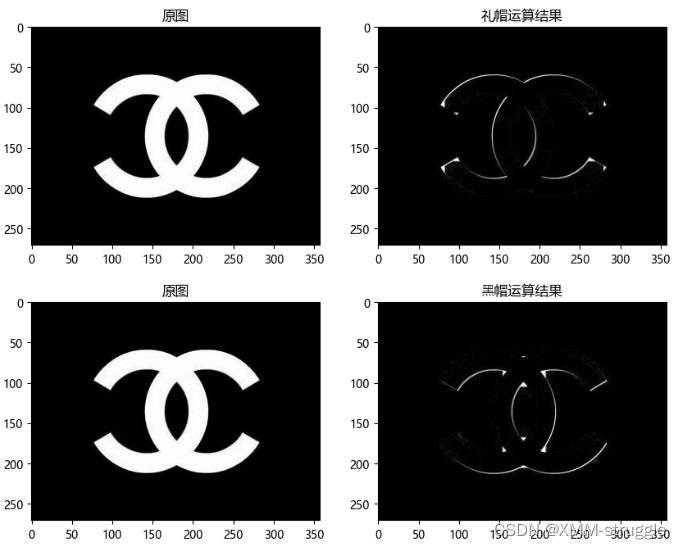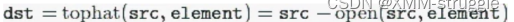cvOpen = cv.morphologyEx(img1,cv.MORPH_TOPHAT,kernel) # 礼帽运算