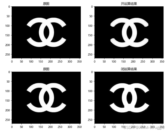 op: 处理⽅式:若进⾏开运算,则设为cv.MORPH_OPEN,若进⾏闭运 算,则设为cv.MORPH_CLOSE