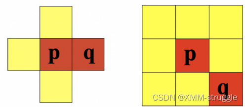 4联通:对于具有值V 的像素p和q,如果q在集合N (p)中,则称这两个像素是4 连通。