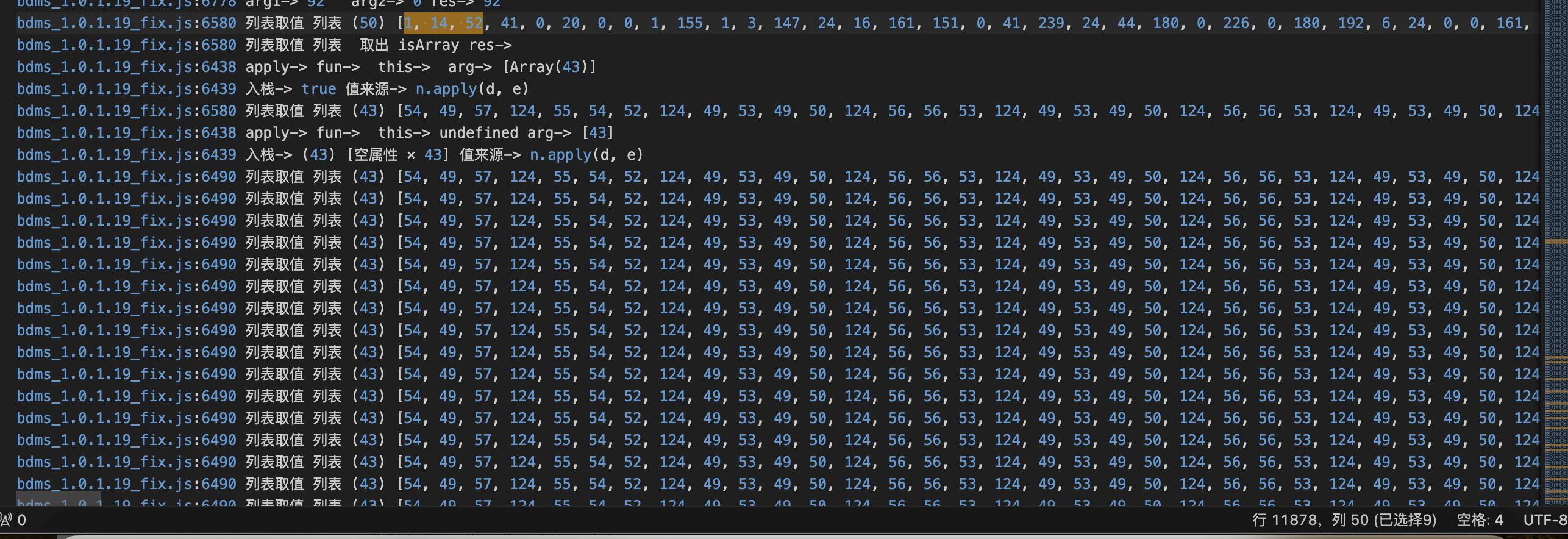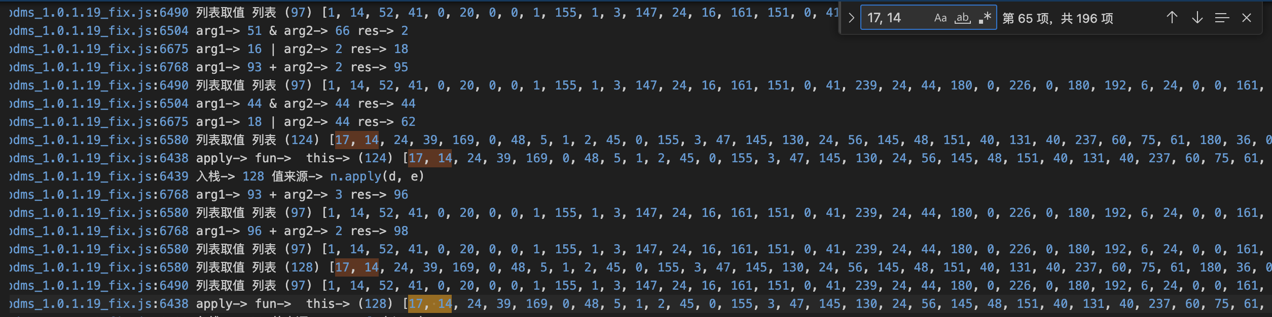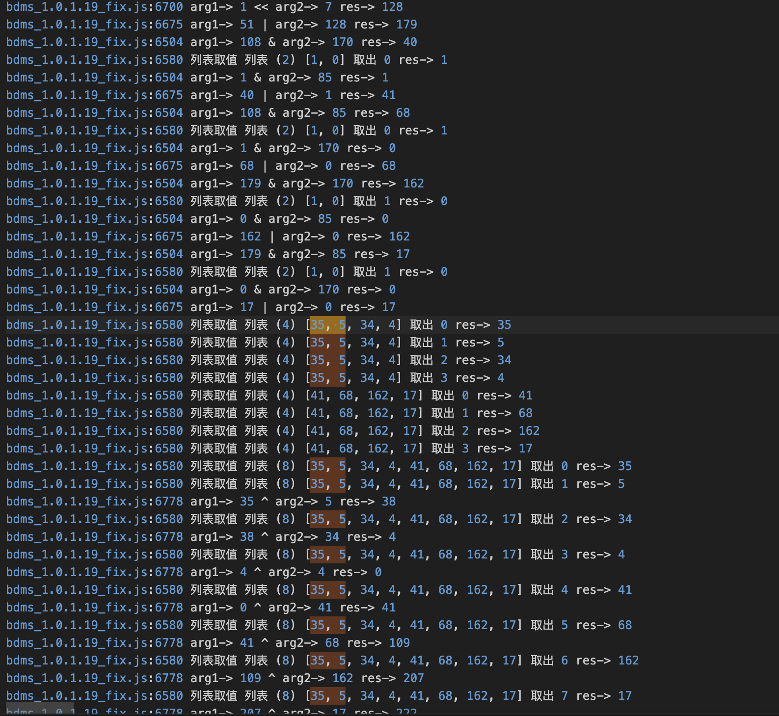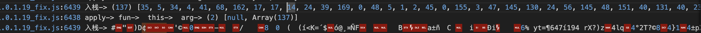 我们对比两份日志,比较,就会发现,其实这个部分其实都是一个会变的数组在异或一个不变的数组