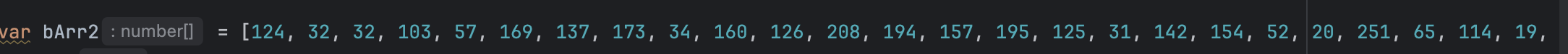 最后会跟到如图位置,这个地方可以猜测是把这个字符数组直接转换成对应的ascll码,所以我们往上找数组的生成会发现,是由8位数组和129位数组拼接而成的
