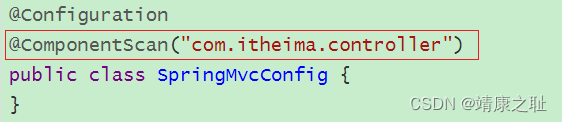 在SpringMVC的配置类SpringMvcConfig中使用注解@ComponentScan,我们只需要将其扫描范围设置到controller即可,如