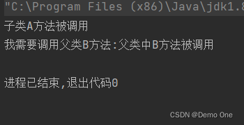 你现在可能会说,那我们如果要调用父类中的B方法该怎么办呢?这里super关键字就起到了作用,同样我们只对子类代码进行操作,看代码~: