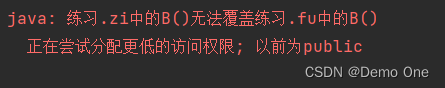 注意事项:父类中的私有方法不可重写,并且访问权限不能更低!!!这里简单说一下Java访问权限顺序(public>默认>私有)