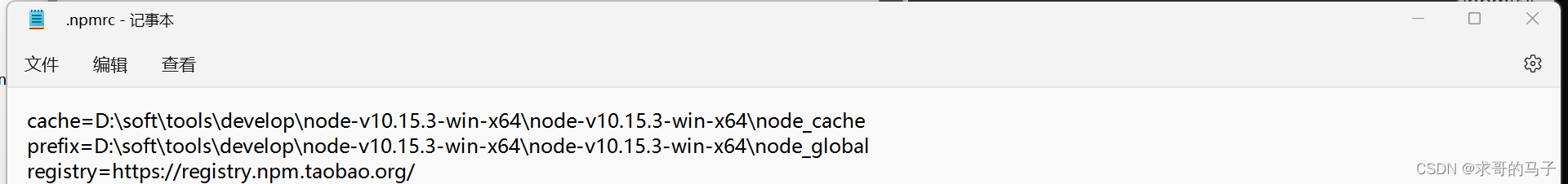 当配置完成之后在你的c 盘用户文件夹下会生成 npmrc 文件,可以看到你的配置信息