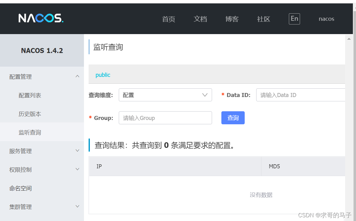修改bin目录下的startup.cmd文件,将set MODE="cluster"一行改成set MODE="standalone",启动服务器 D:\soft\tools\develop\nacos-server-1.4.2\nacos\bin 点击 startup.cmd 文件 运行。运行成功后,访问http://localhost:8848/nacos可以查看Nacos的主页,默认账号密码都是nacos。