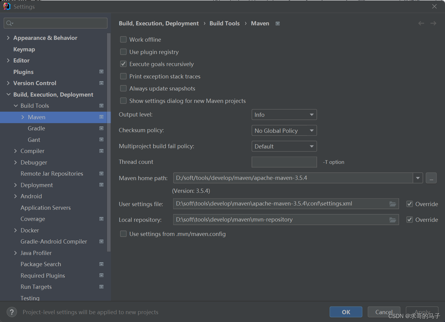 Maven home path : D:/soft/tools/develop/maven/apache-maven-3.5.4(你的安装路径)