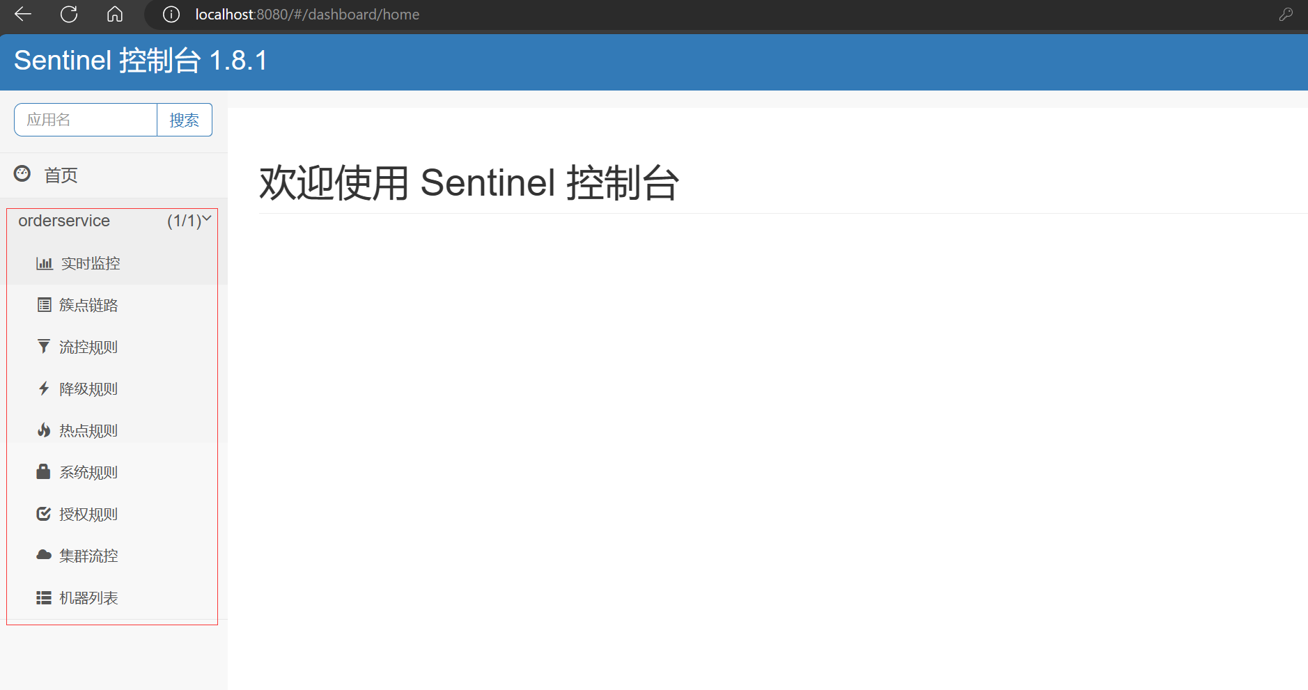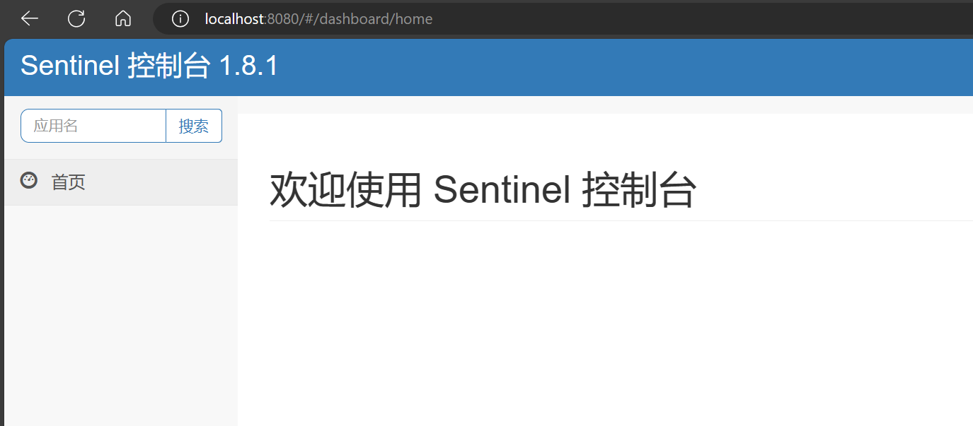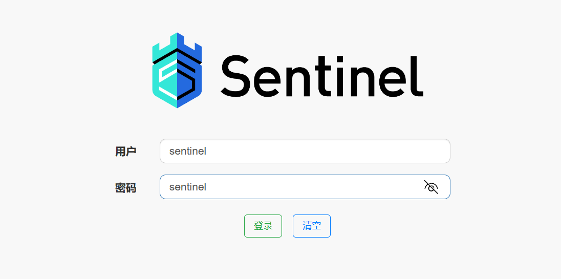 访问http://localhost:8080页面,就可以看到 Sentinel 的控制台,默认的用户和密码都是 sentinel: