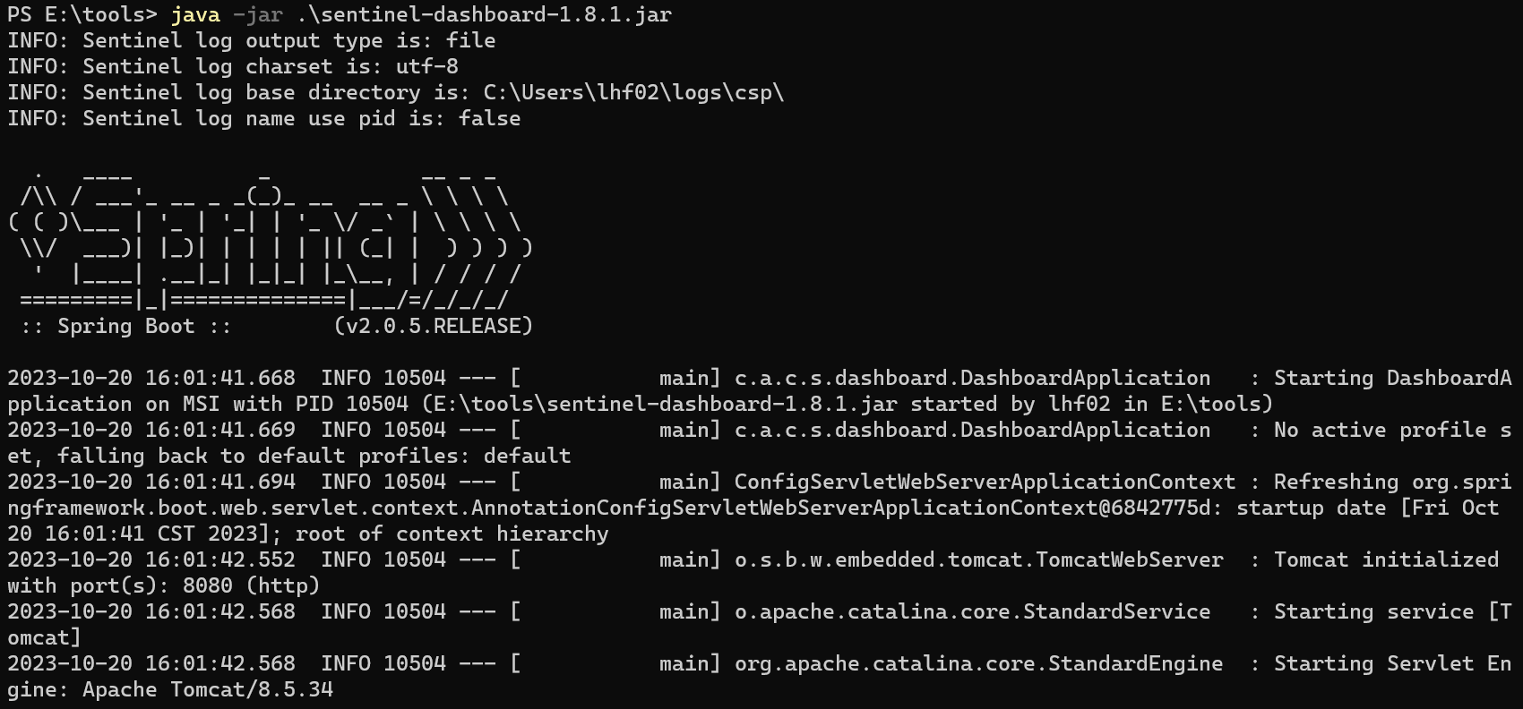 将 JAR 包放到任意非中文目录,执行下面的命令运行 Sentinel:
