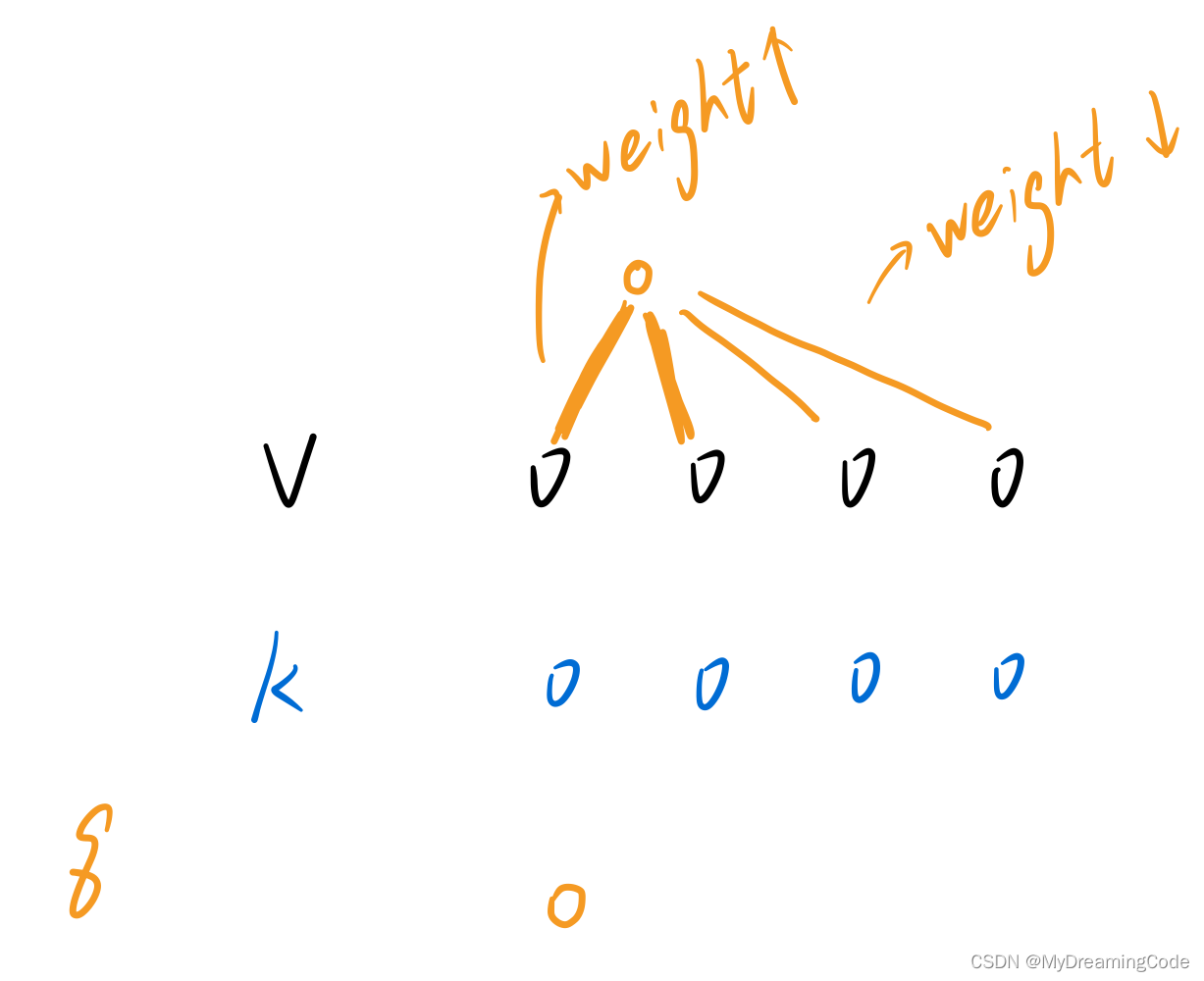 output是value的加权和。对于每一个value的权重,是这个value对应的key与查询query的相似度算来的。(权重等价于query和你对应的key的那个相似度,相似度越大权重越大)
