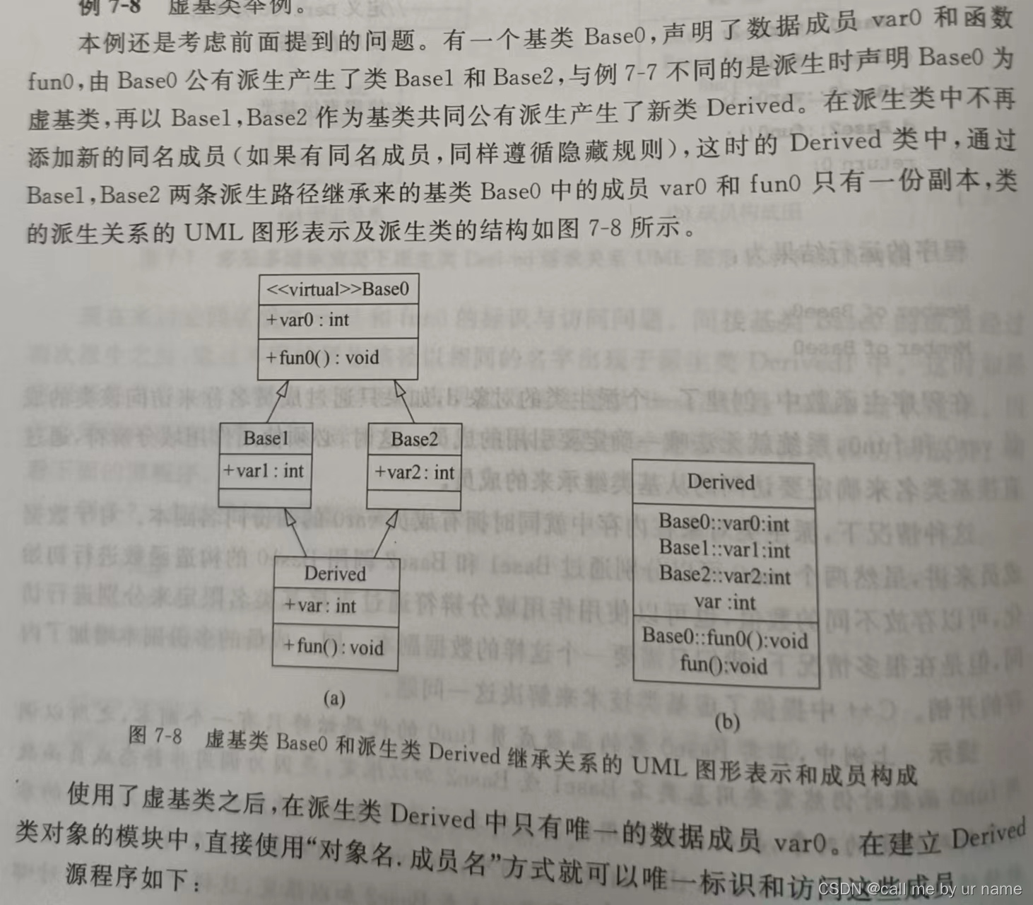 而虚基类只维护一份成员副本,使用更为简洁,内存空间更为节省