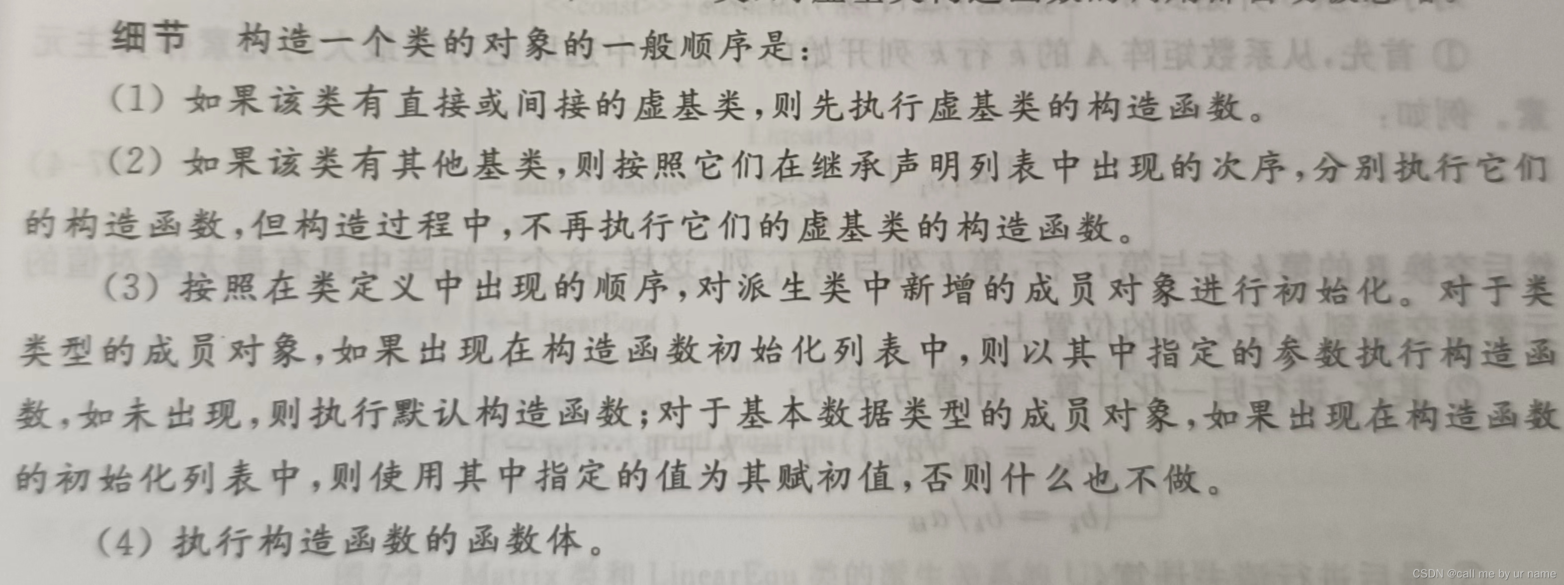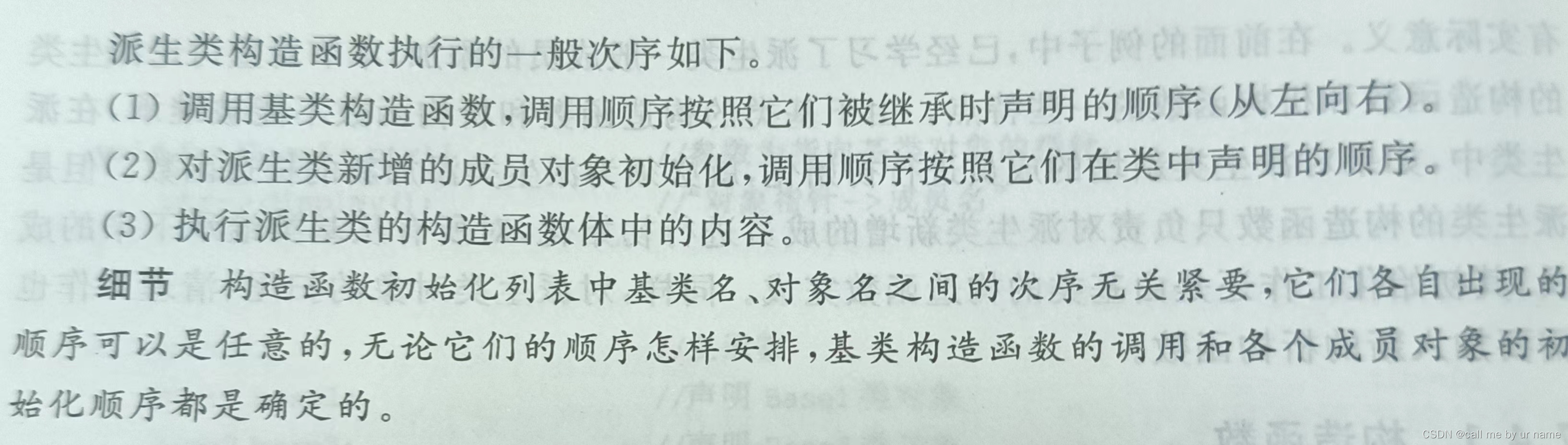 派生类的构造函数指负责对派生类新增的成员进行初始化,对所有从基类继承下来的成员,其初始化工作还是由基类的构造函数完成