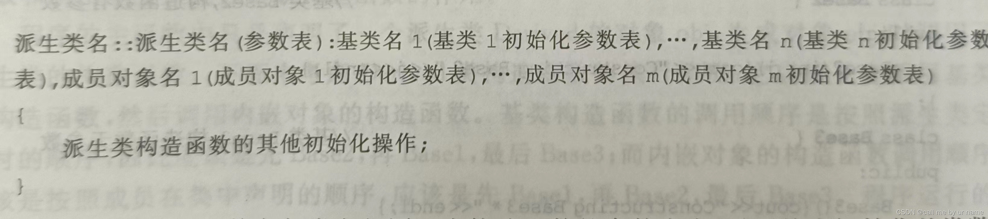 构造派生类的对象时,就要对基类的成员对象和新增成员对象对象进行初始化