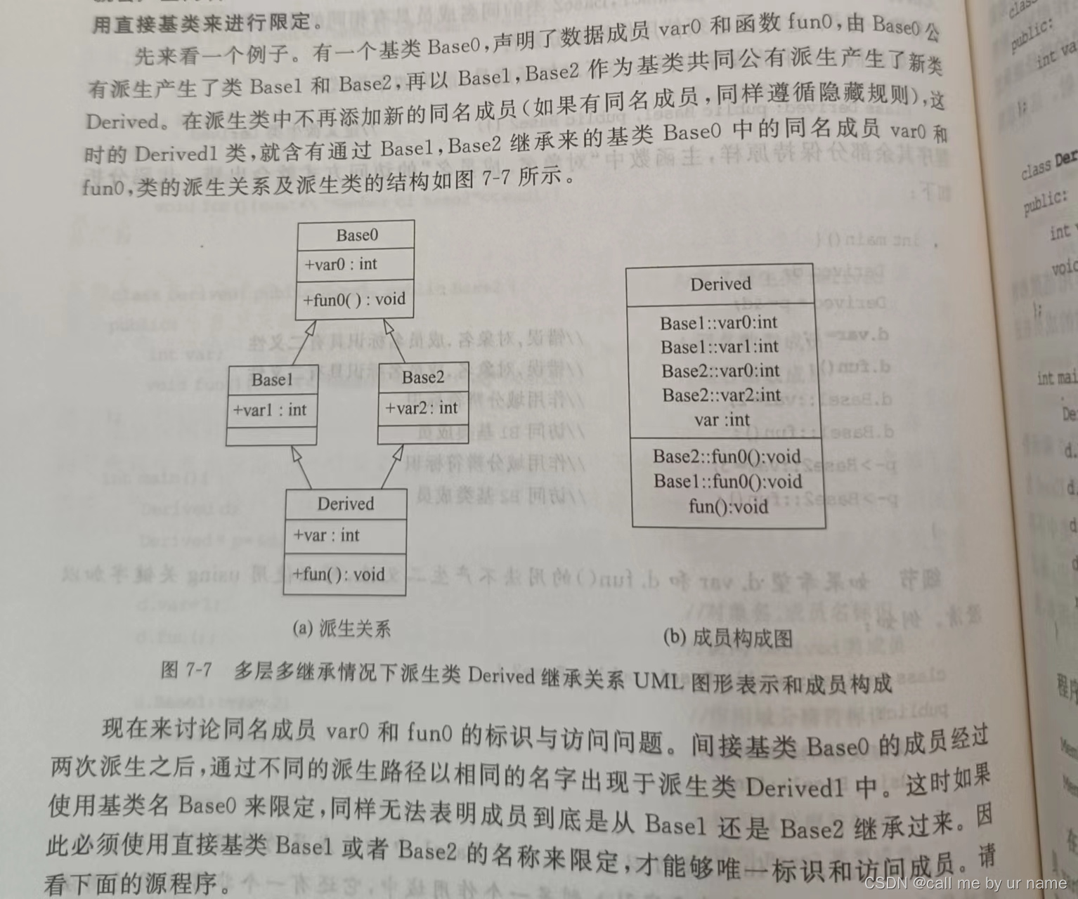 如果某派生类的多个基类拥有同名的成员,同时,派生类又新增这样的同名成员,在这种情况下,派生类成员将隐藏所有基类的同名成员。但是如果派生类没有声明同名成员,这时,从不同基类继承过来的成员具有相同的名称,同时具有相同的作用域,系统无法判断到底是调用哪个基类的成员,这时必须通过基类名和作用域分辨符来标识成员。