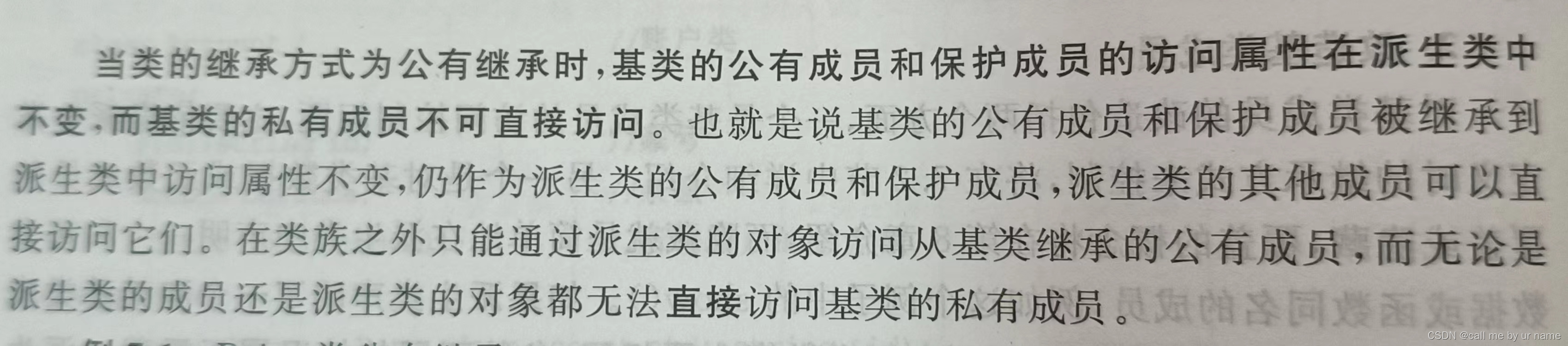 所以,可以推理——公有继承,将基类中的公有和保护成员的访问属性原封不动地继承下来,作为本身(派生类)的相应访问属性的成员,而私有成员不能被访问(若继续派生,则以此类推)