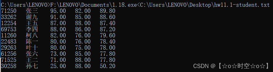 输入如下十个学生的成绩数据,每个学生信息包括 学号 、姓名 、考试成绩 ,实验成绩。同时计算每个学生的总评成绩( =考试成绩*60% + 实验成绩*40%)并保存至每个结构体的totalmark。