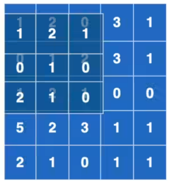 # 输出宽度W_out = (W - K_W) / stride + 1 = (5 - 3)/1 + 1 = 3