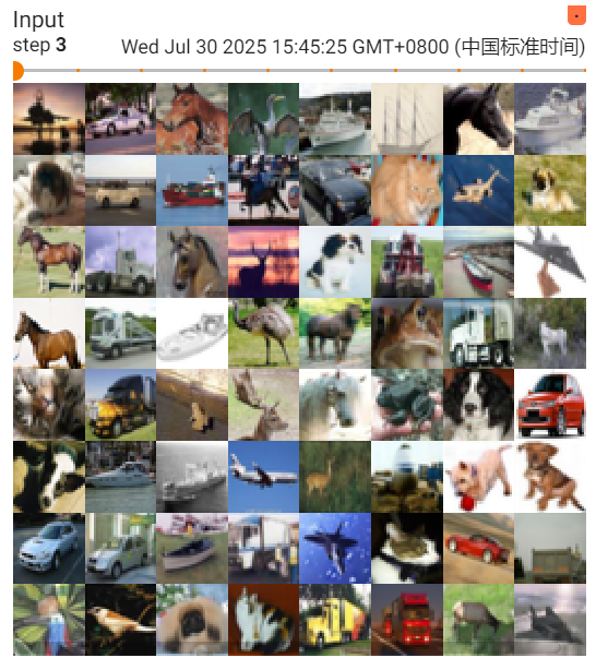 # 将当前批次的输入图像写入TensorBoard,标签为"Input",步长为当前step