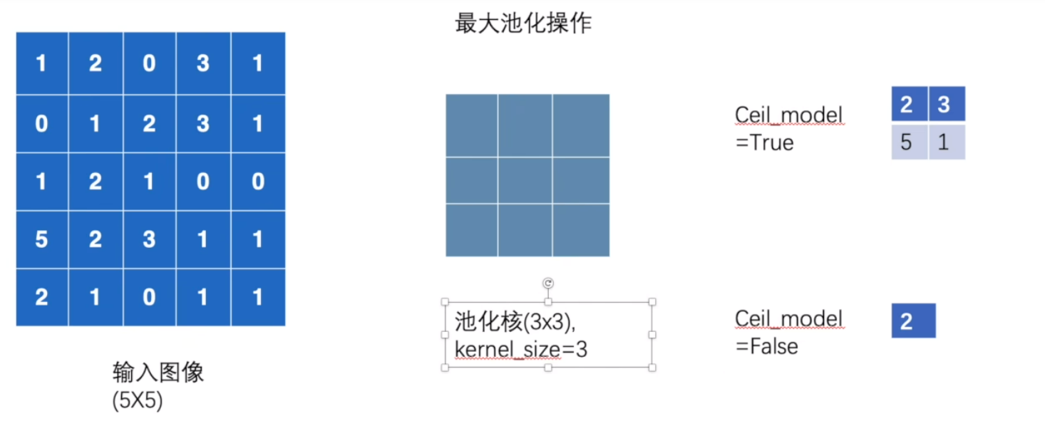 # ceil_mode=False:当池化窗口滑动到边缘无法完整覆盖时,采用向下取整(丢弃不完整窗口)