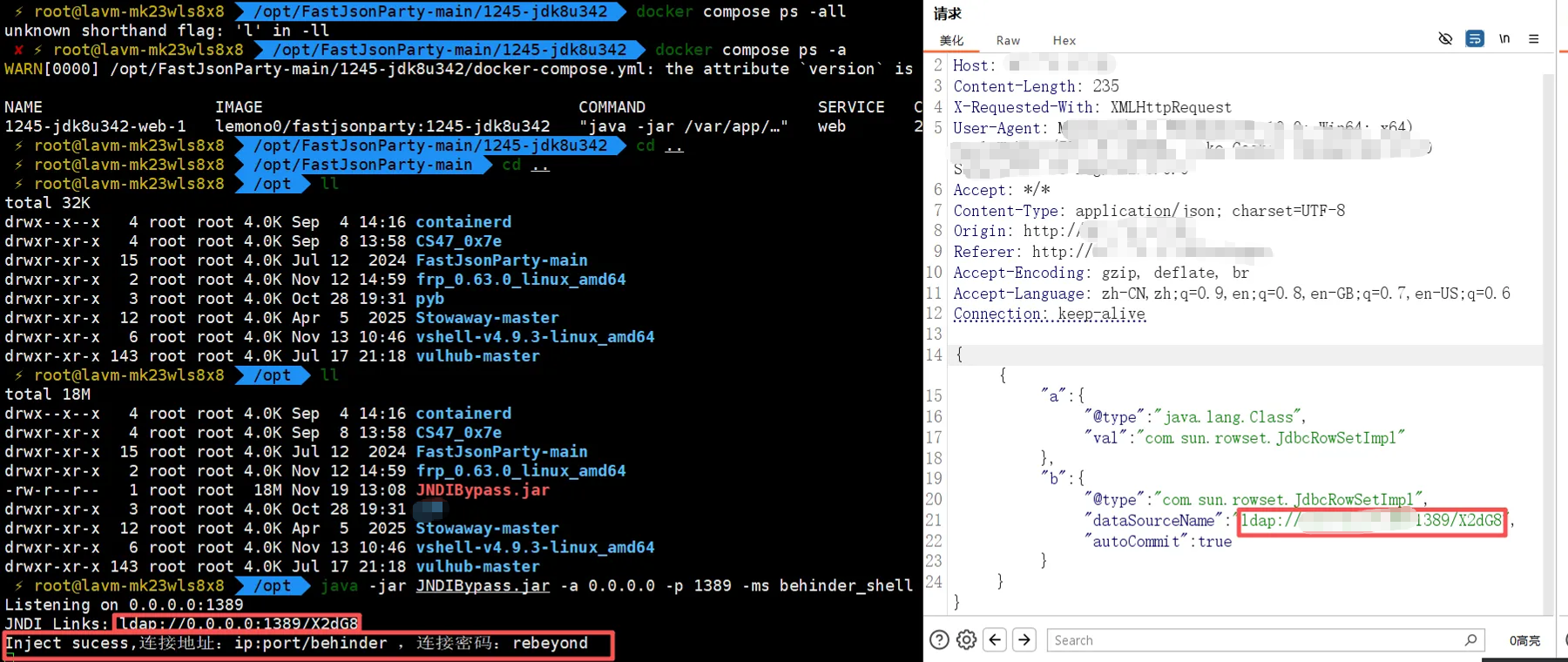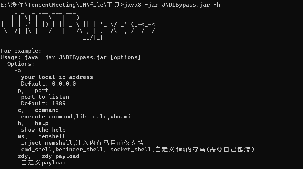 7.确定了是高版本JDK,所以我们使用JNDIBypass.jar 工具。