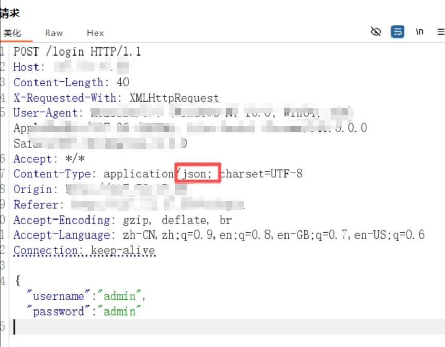 3.打开后如图,我们登录并抓包,右键发送到重放器,发现是json格式