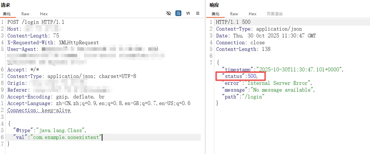 5.fastjson版本探测,我们拼接payload(同样不加花括号),发现是1.2.45版本