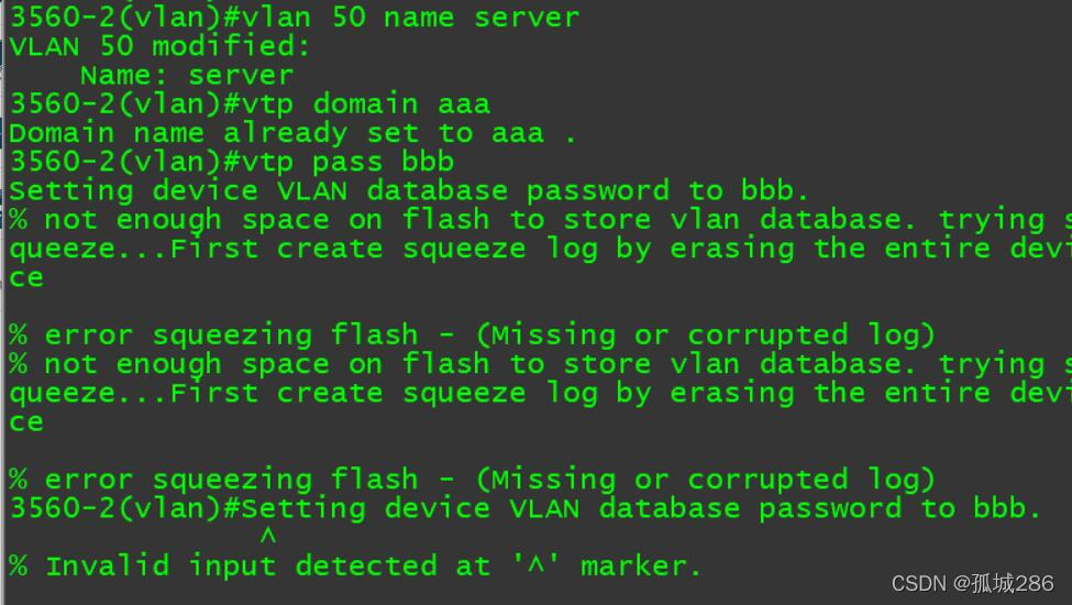 本文介绍了使用GNS3模拟器创建VTP时遇到的空间不足错误,并提供了详细的解决步骤,包括清空闪存以确保有足够的空间来存储VLAN数据库。